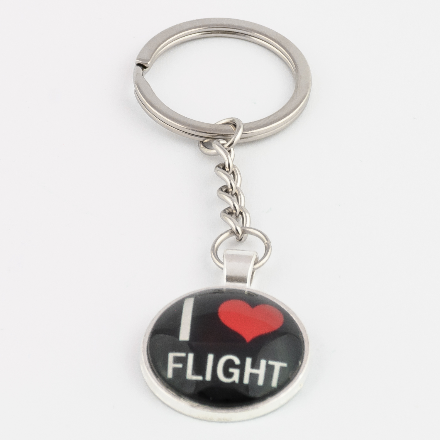 ROUND KEYCHAIN I LOVE FLIGHT METAL